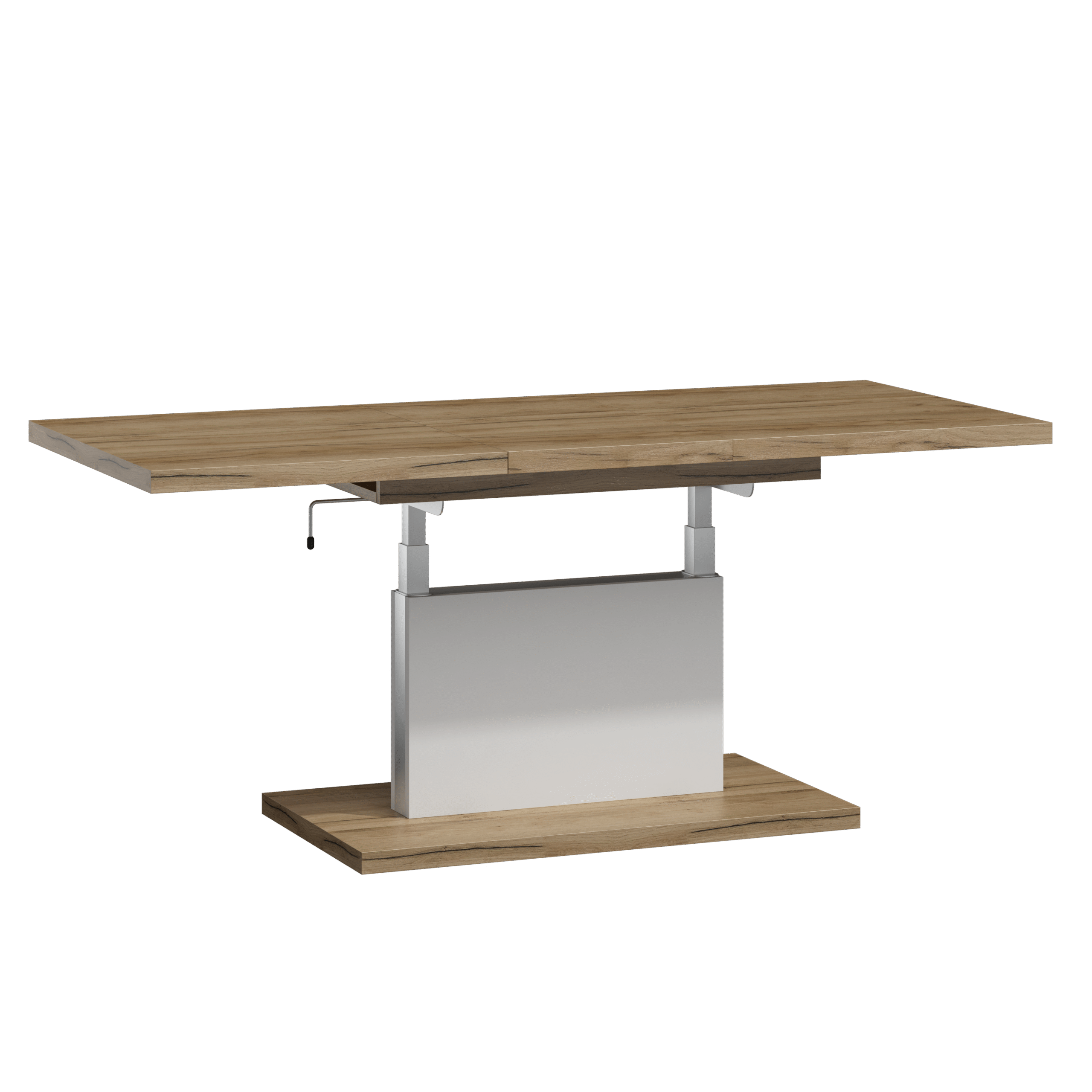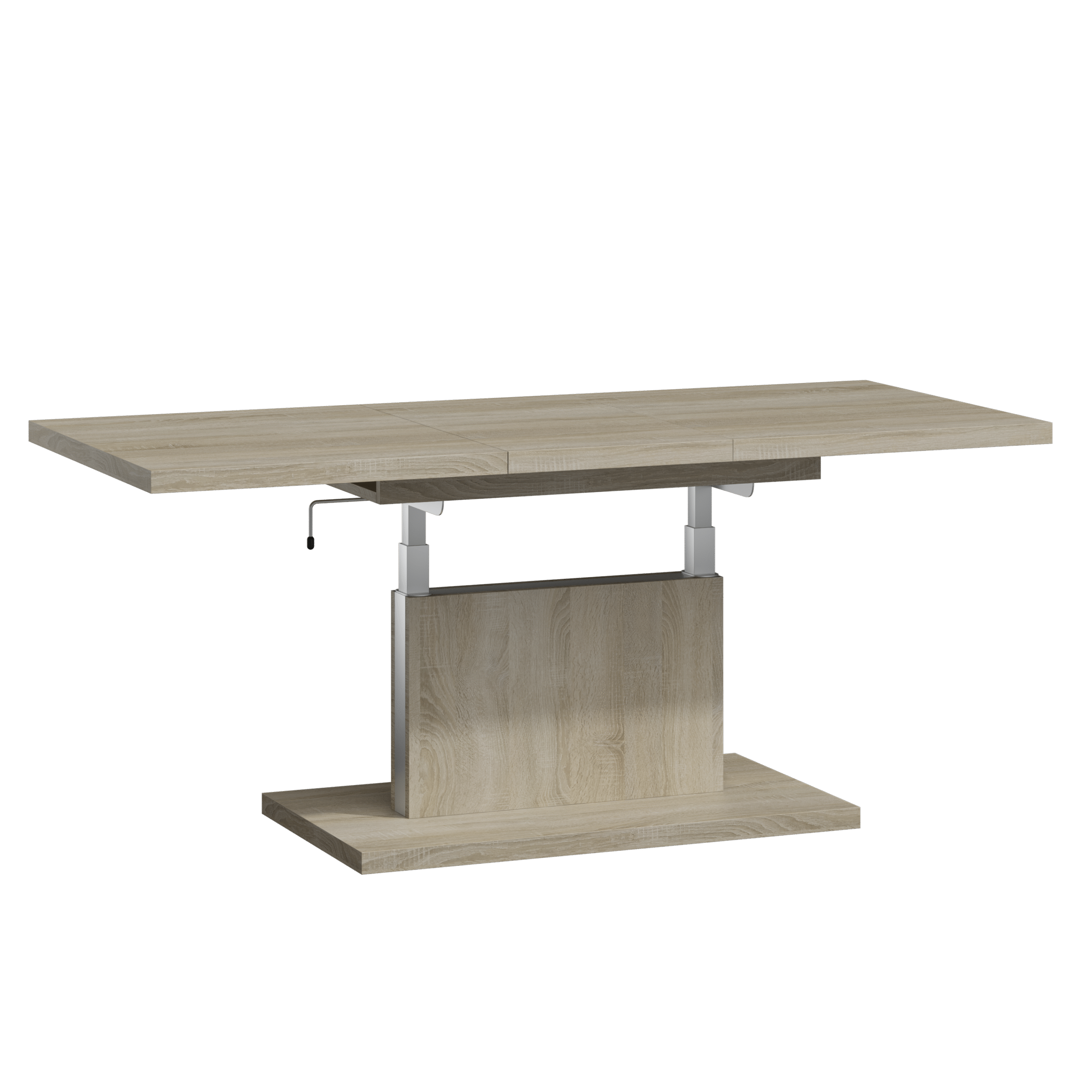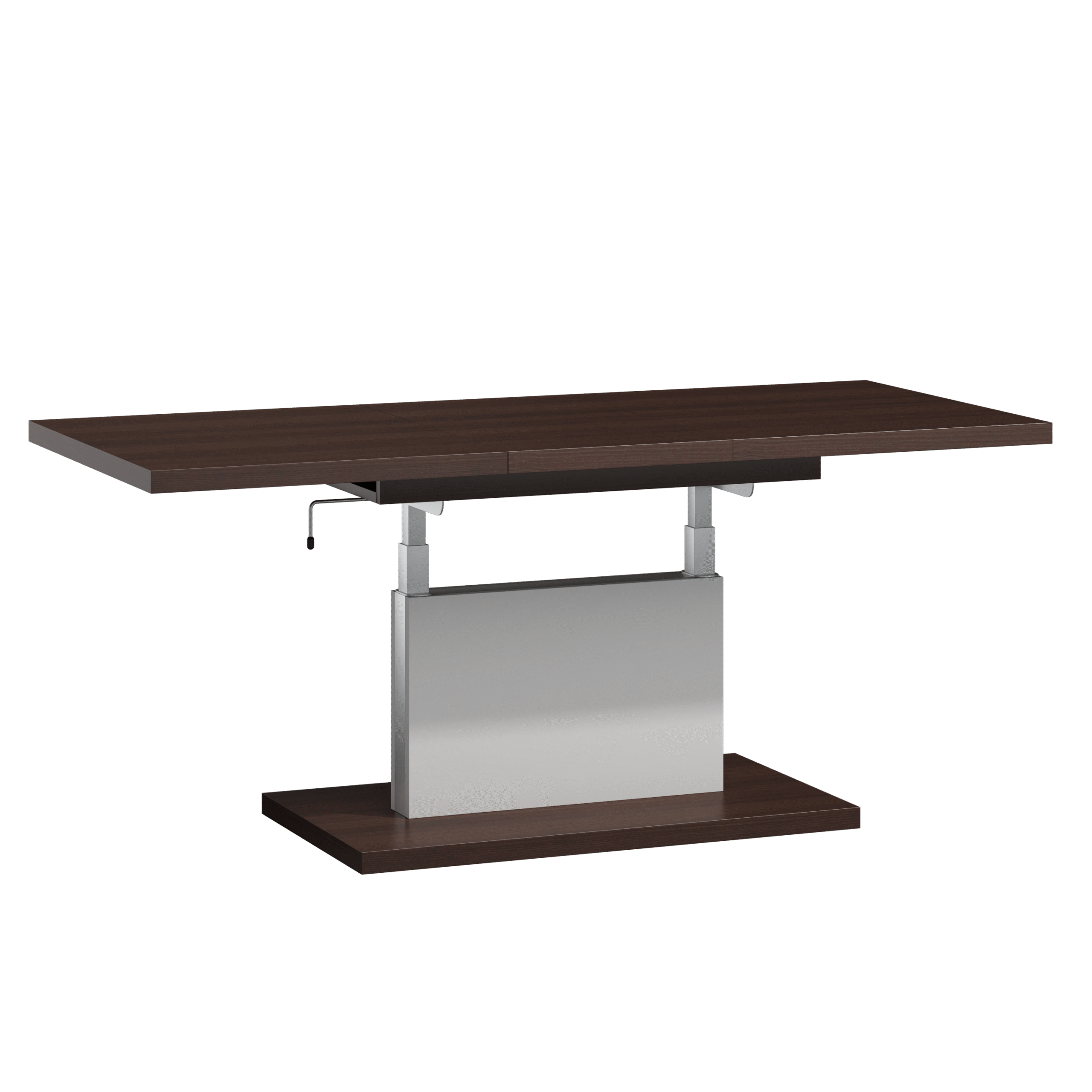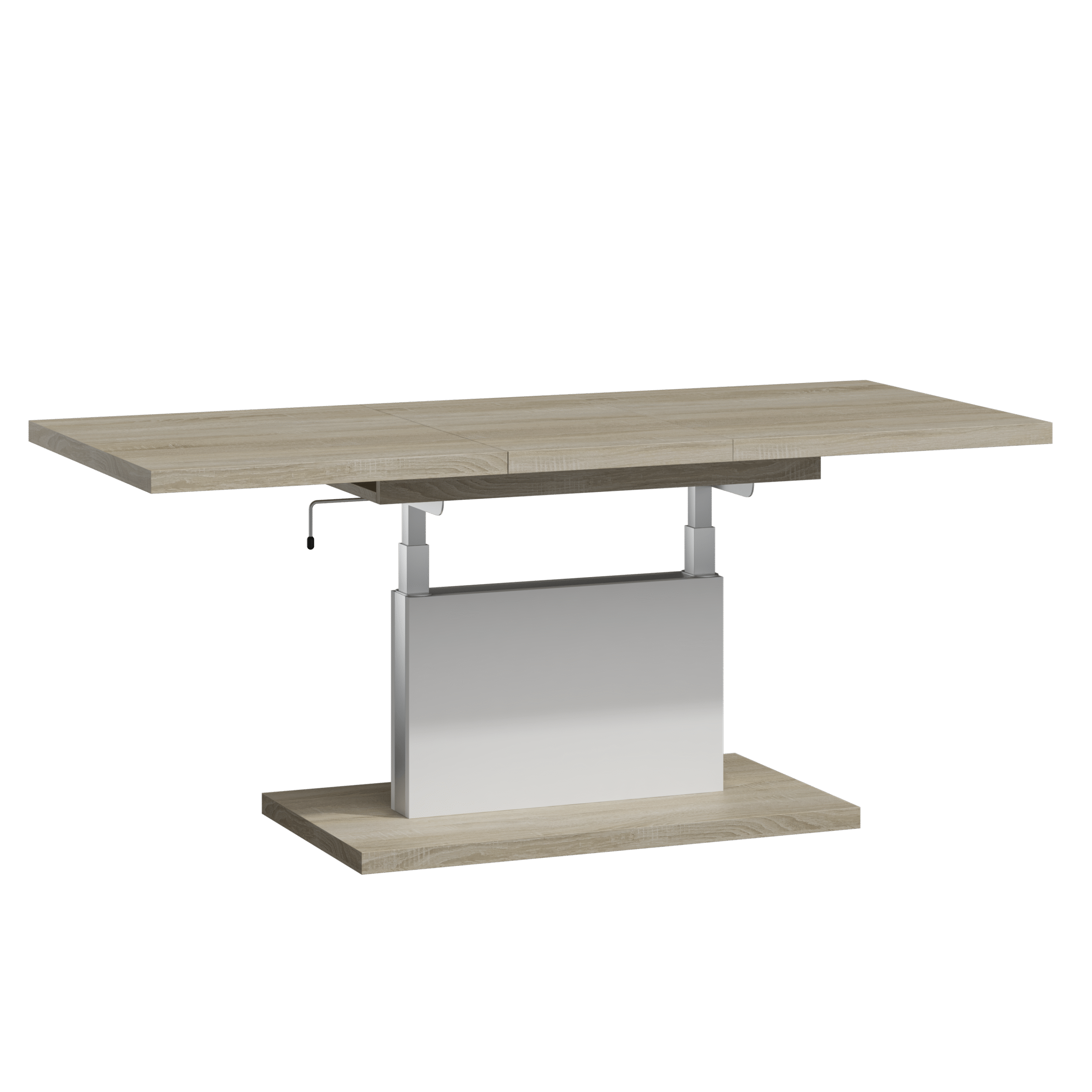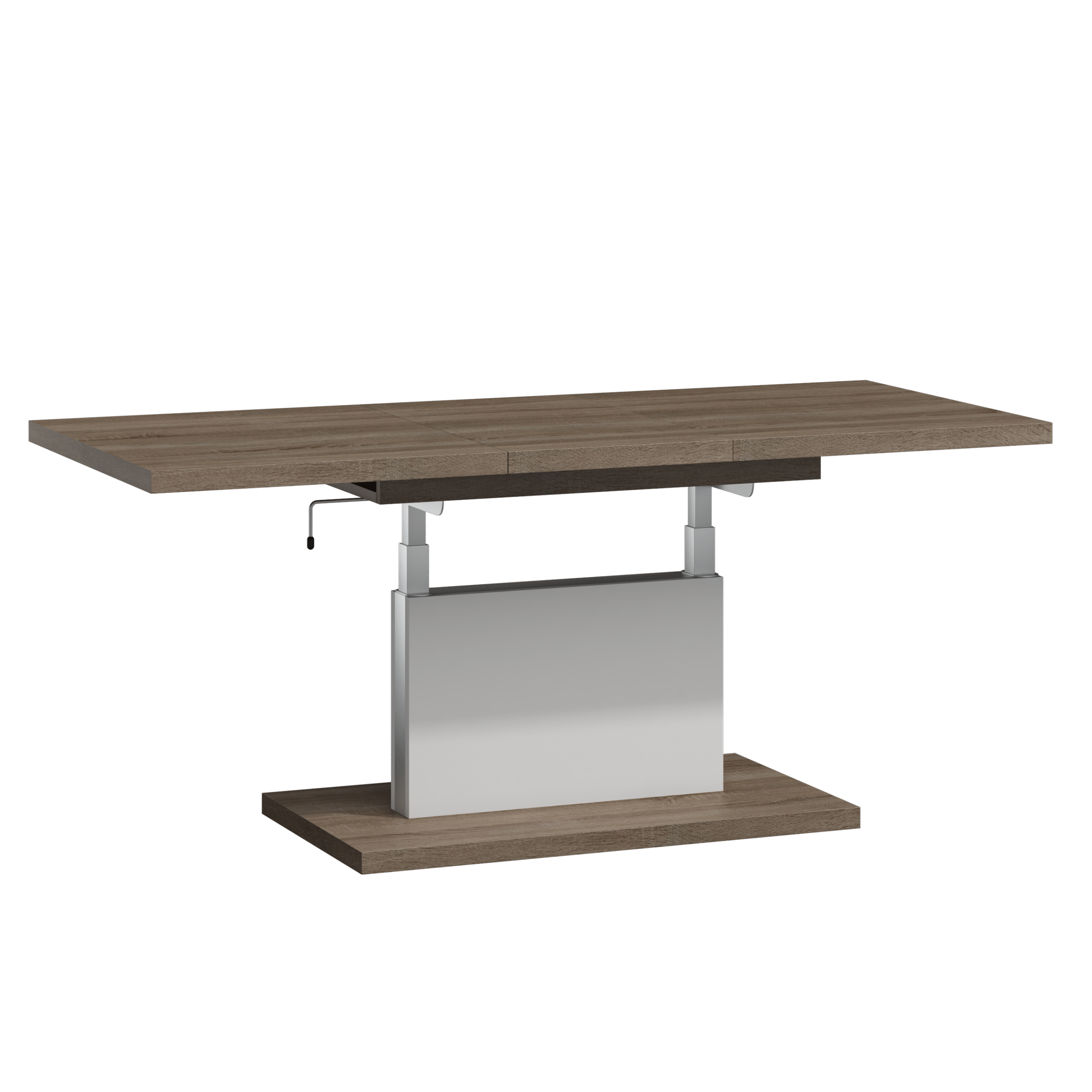 Prostokątna ława podnoszona to uniwersalny mebel, który sprawdzi się w każdym domu. Jej blat można rozsuwać oraz podnosić za pomocą korbki. Rozkładanie ławy jest niezwykle proste dzięki stalowym łożyskowanym prowadnicom. Dodatkowo istnieje możliwość zamontowania prowadnic synchronicznych, które pozwalają jednocześnie rozsuwać obie części blatu.