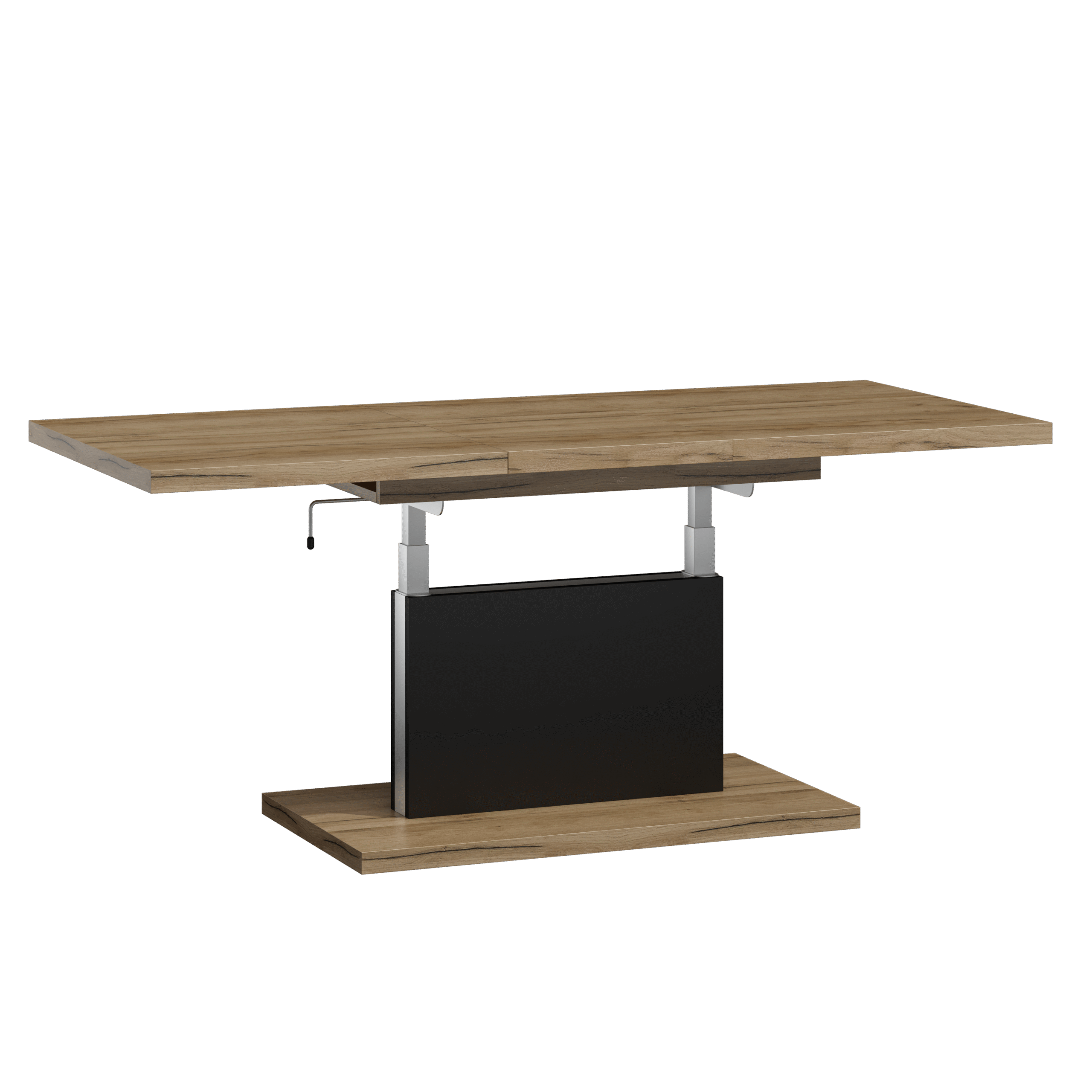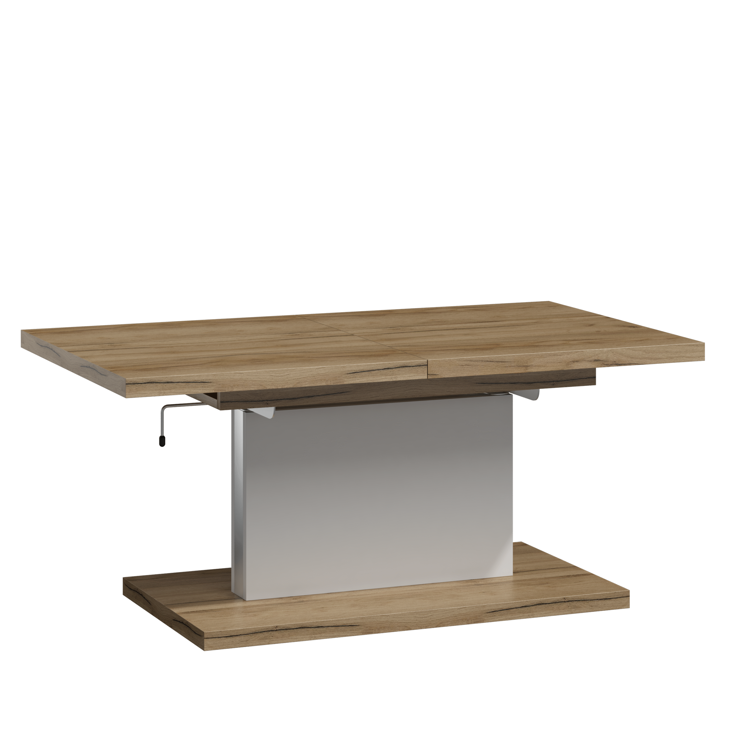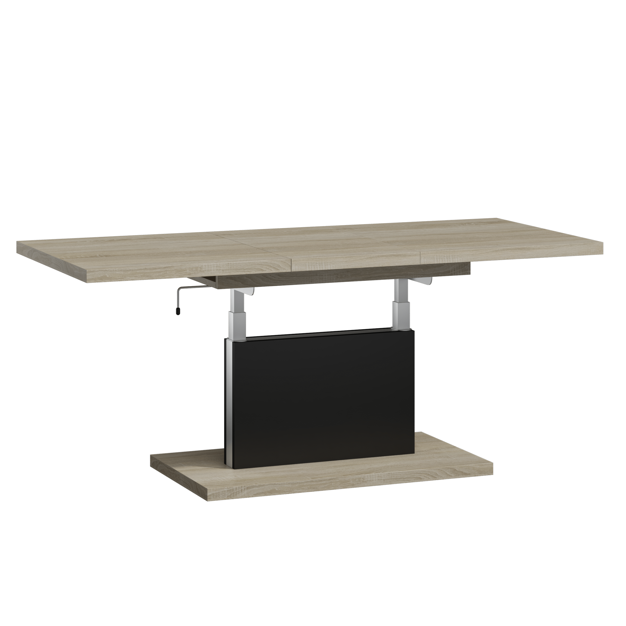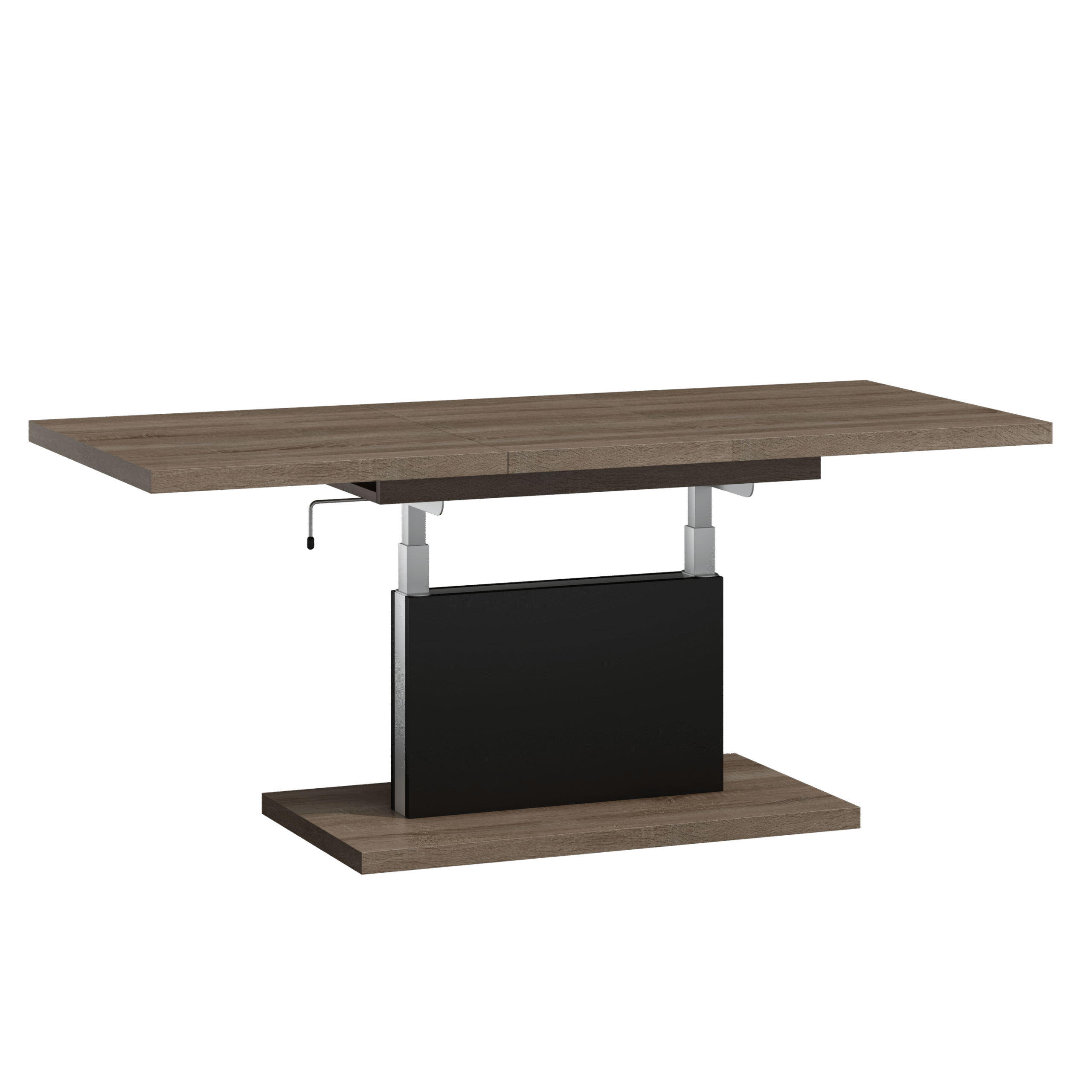 Prostokątna ława podnoszona to uniwersalny mebel, który sprawdzi się w każdym domu. Jej blat można rozsuwać oraz podnosić za pomocą korbki. Rozkładanie ławy jest niezwykle proste dzięki stalowym łożyskowanym prowadnicom. Dodatkowo istnieje możliwość zamontowania prowadnic synchronicznych, które pozwalają jednocześnie rozsuwać obie części blatu.
