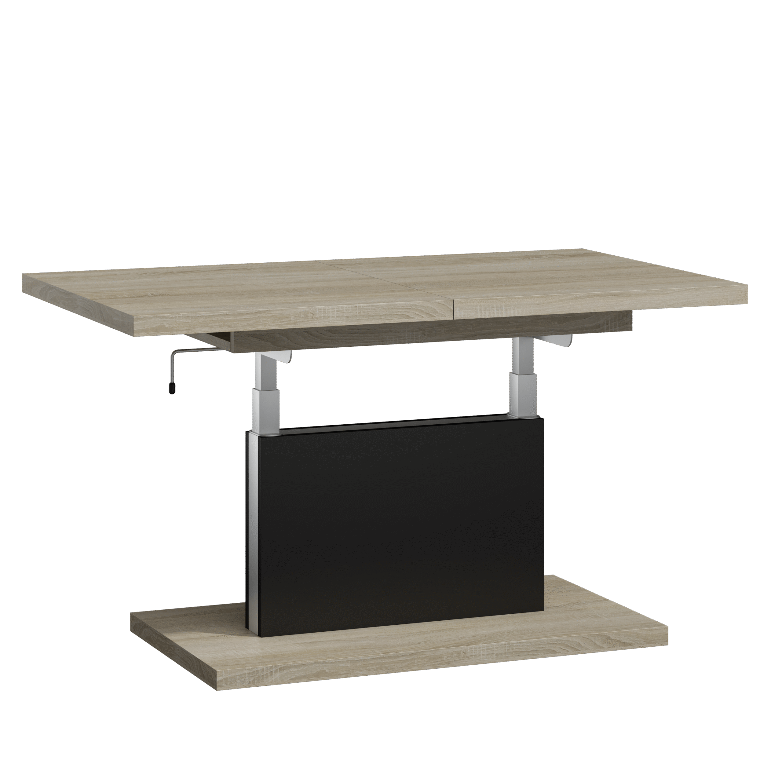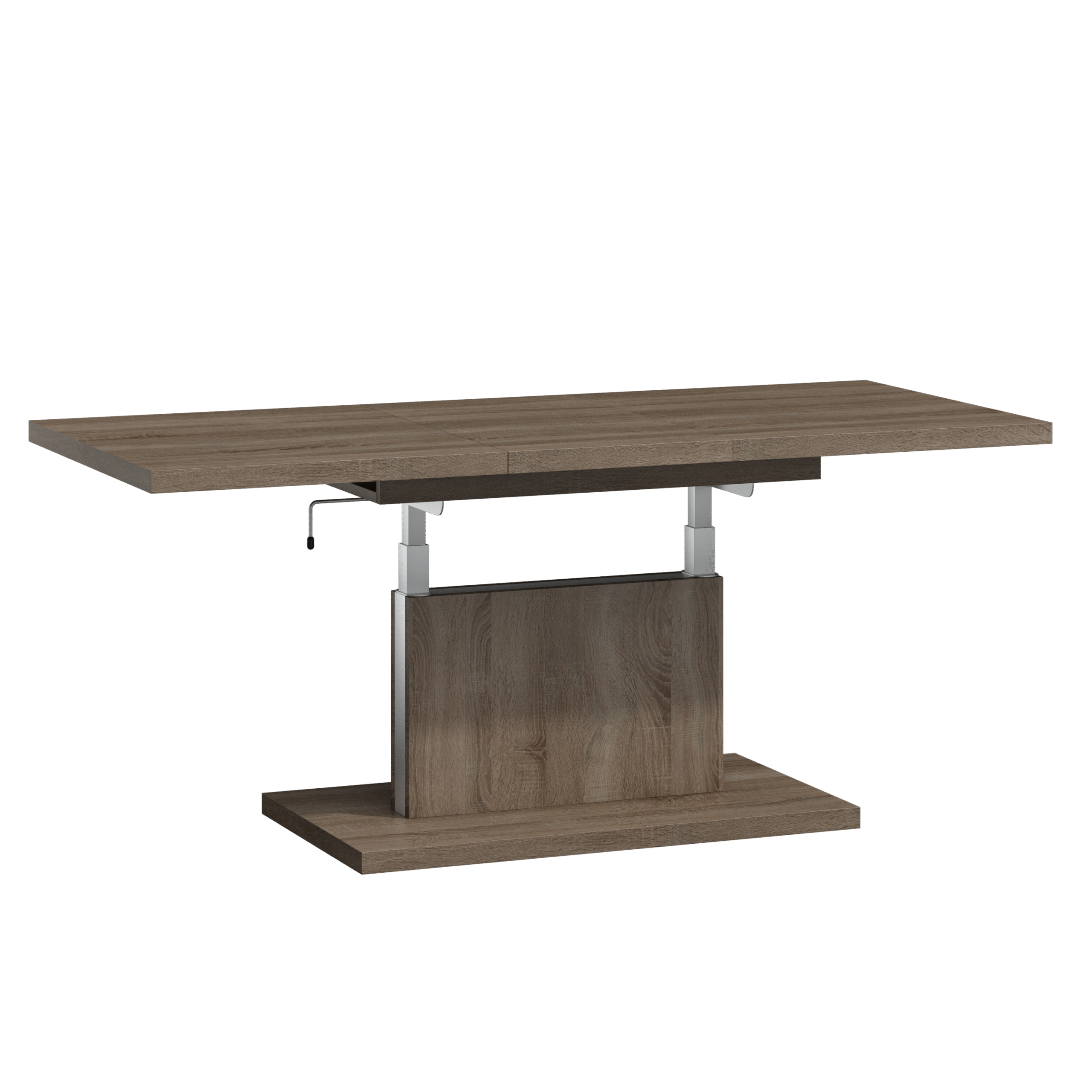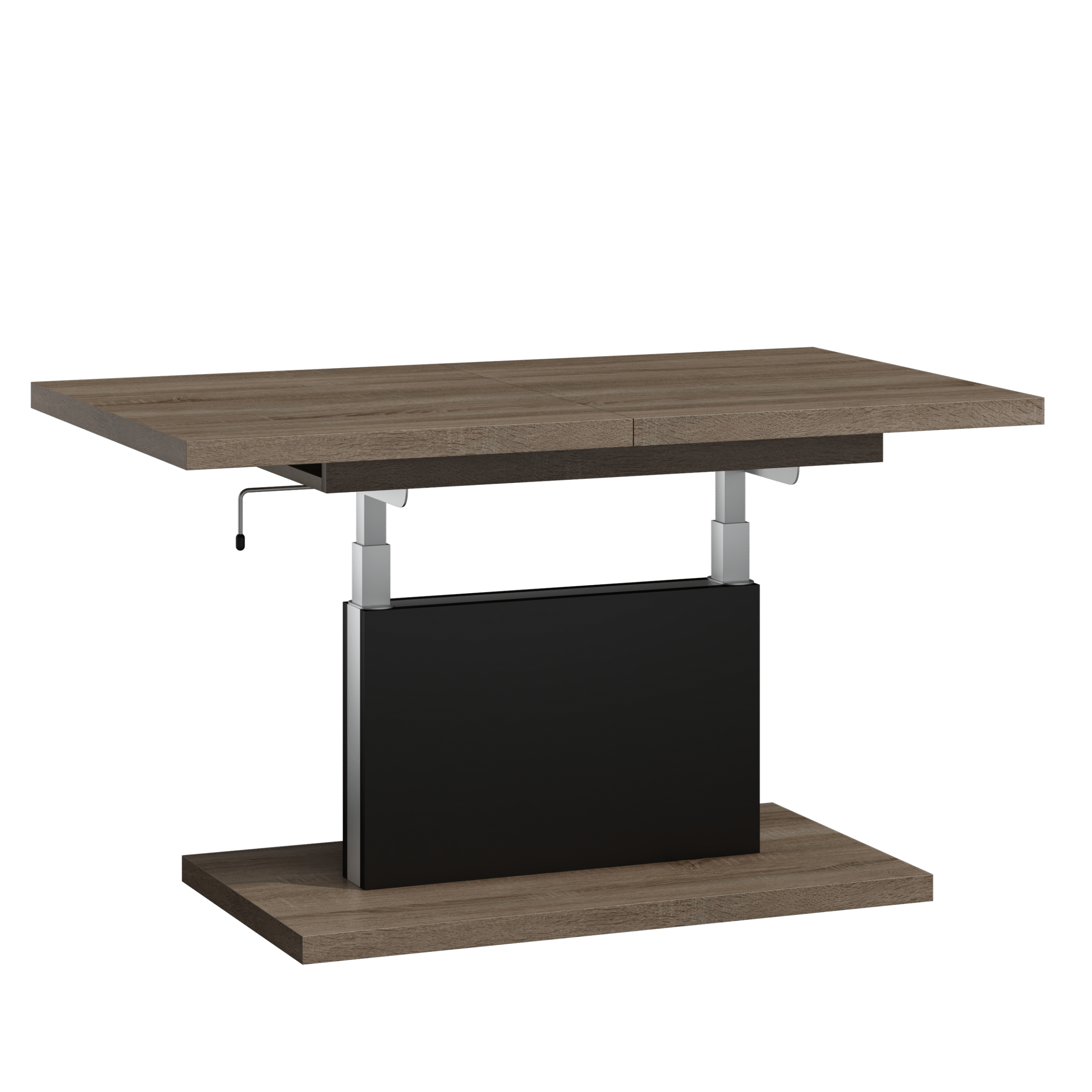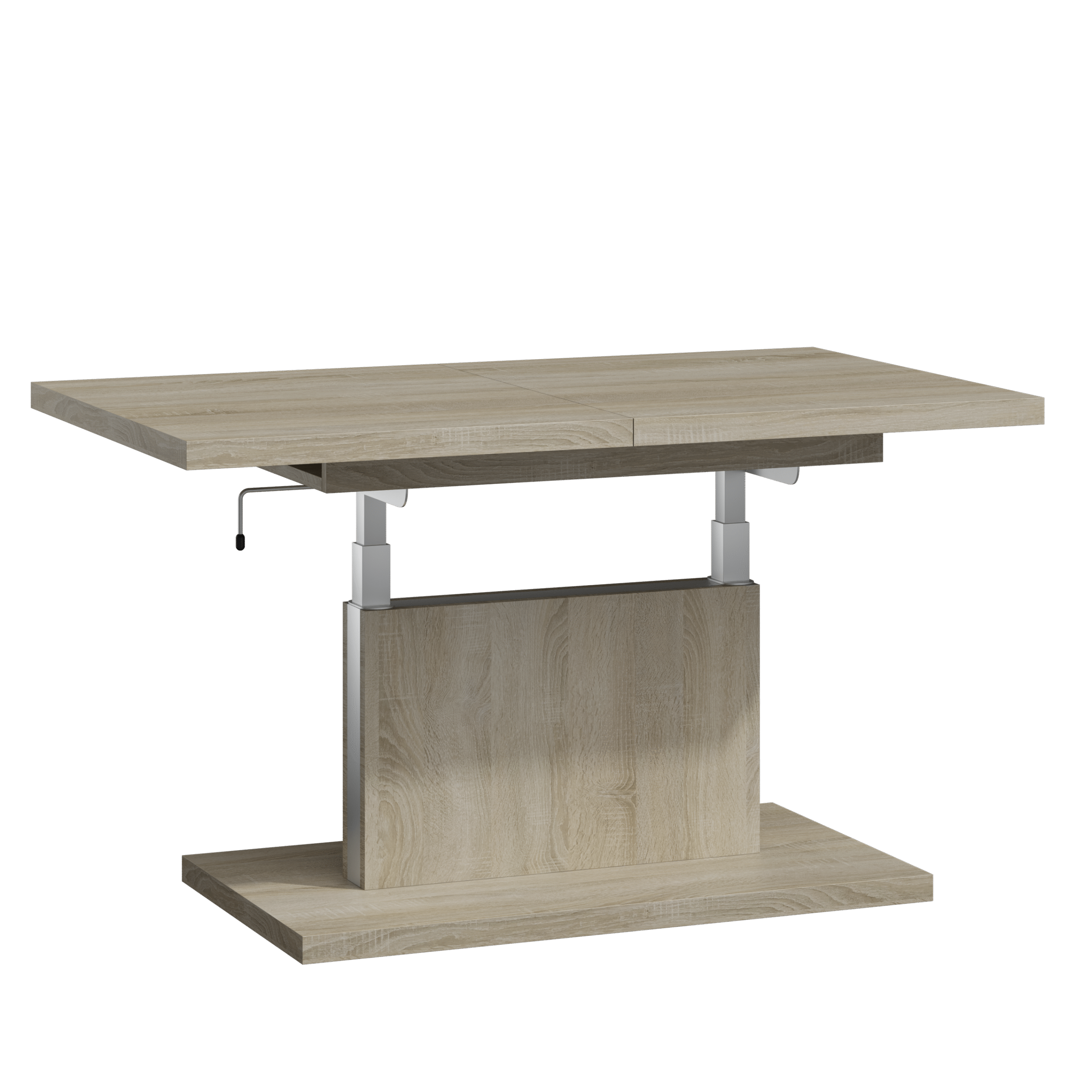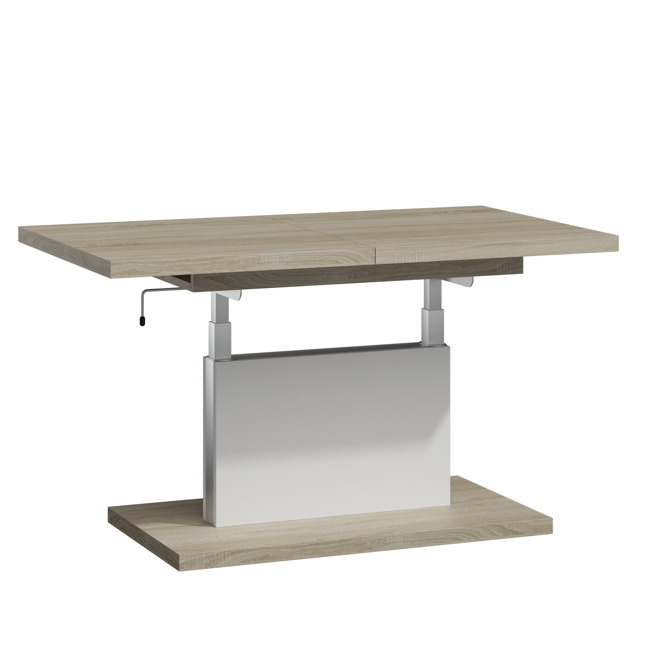 Prostokątna ława podnoszona to uniwersalny mebel, który sprawdzi się w każdym domu. Jej blat można rozsuwać oraz podnosić za pomocą korbki. Rozkładanie ławy jest niezwykle proste dzięki stalowym łożyskowanym prowadnicom. Dodatkowo istnieje możliwość zamontowania prowadnic synchronicznych, które pozwalają jednocześnie rozsuwać obie części blatu.