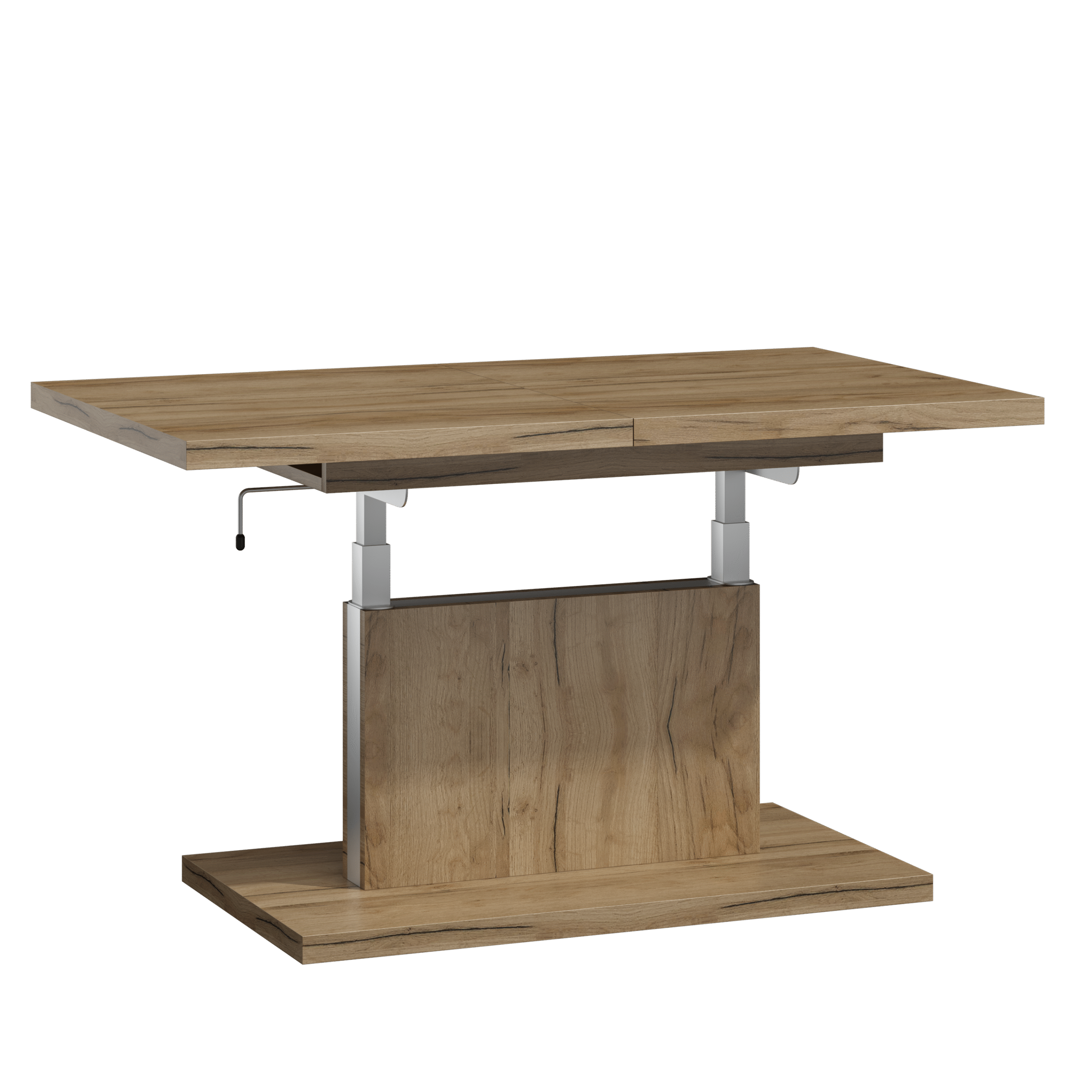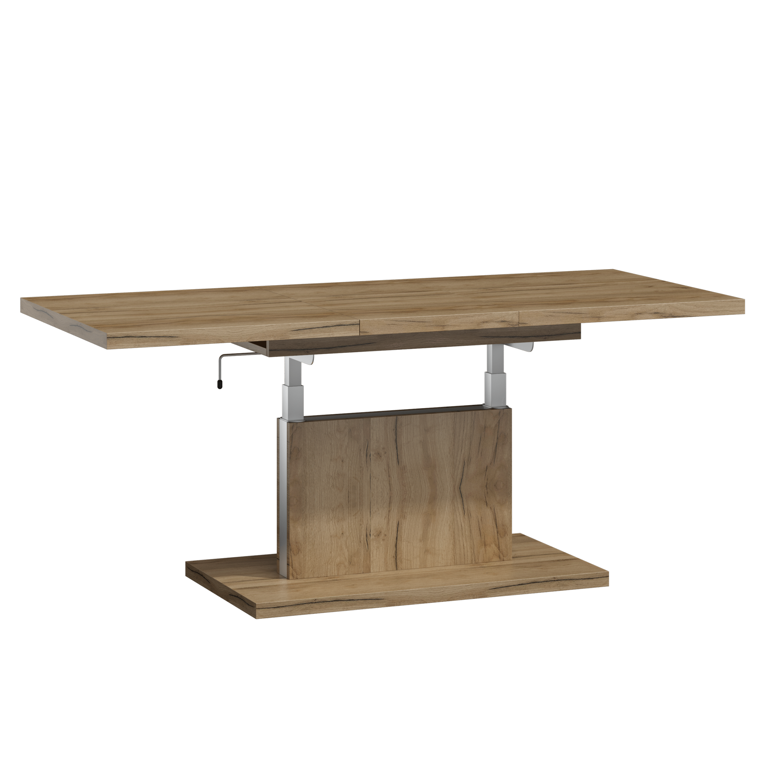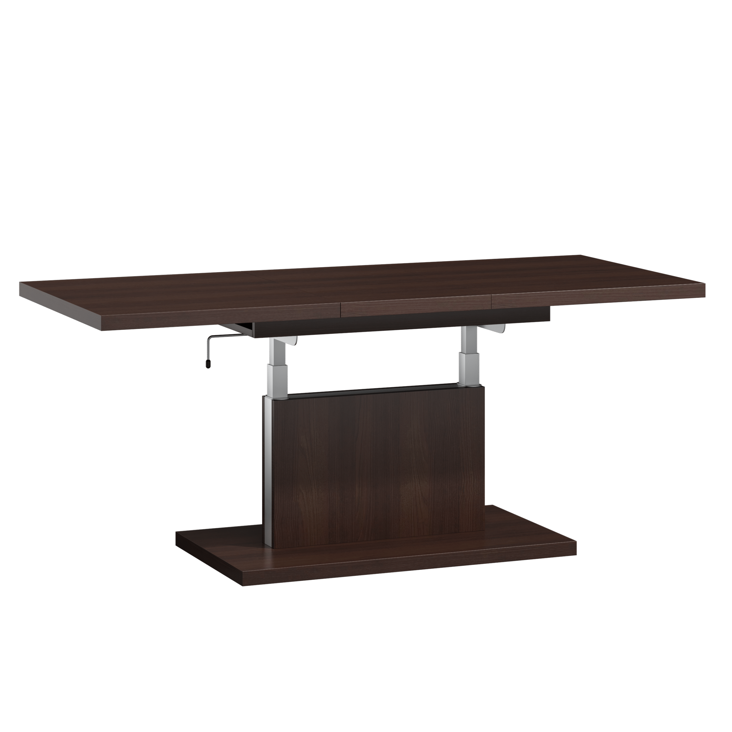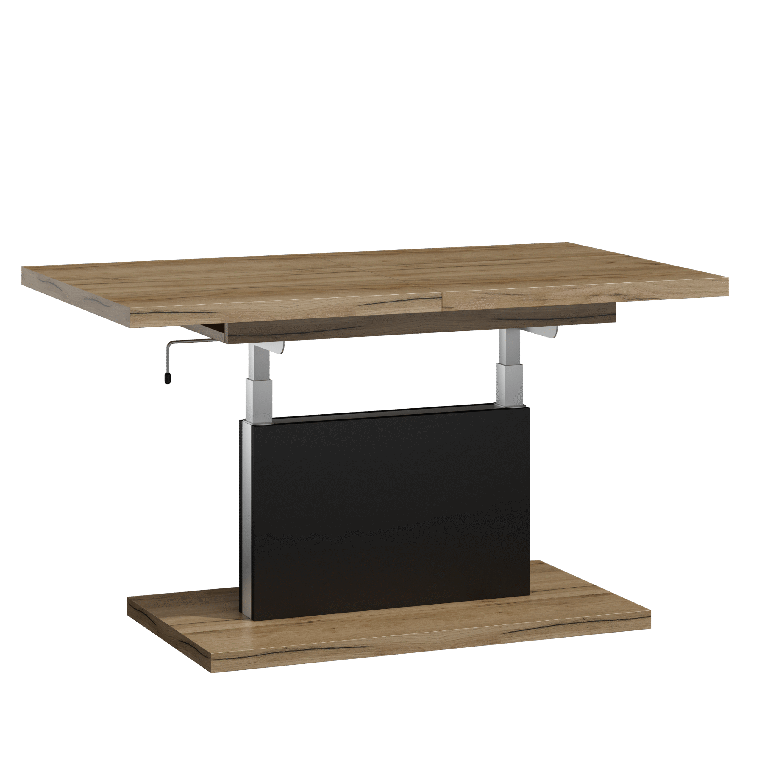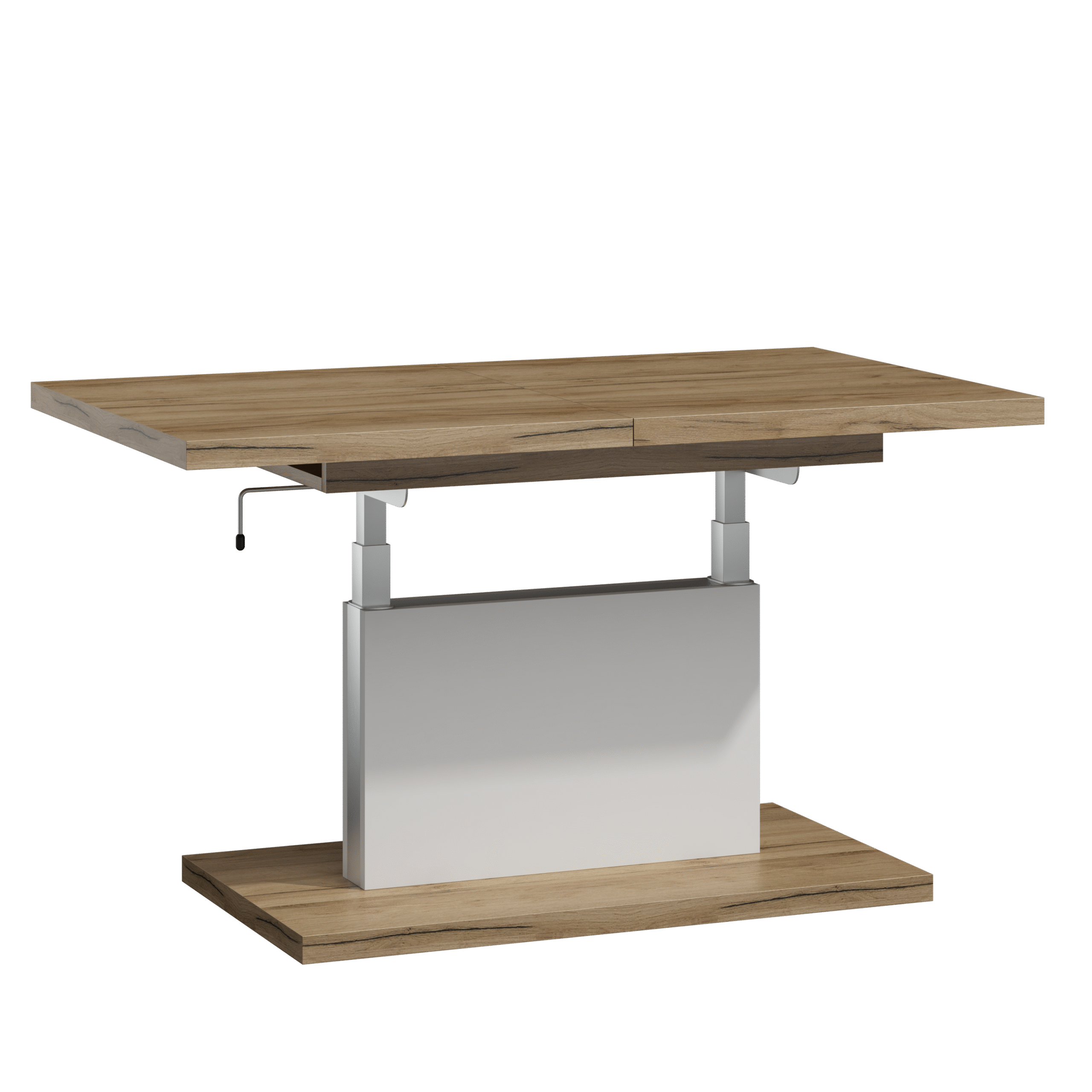 Prostokątna ława podnoszona to uniwersalny mebel, który sprawdzi się w każdym domu. Jej blat można rozsuwać oraz podnosić za pomocą korbki. Rozkładanie ławy jest niezwykle proste dzięki stalowym łożyskowanym prowadnicom. Dodatkowo istnieje możliwość zamontowania prowadnic synchronicznych, które pozwalają jednocześnie rozsuwać obie części blatu.
