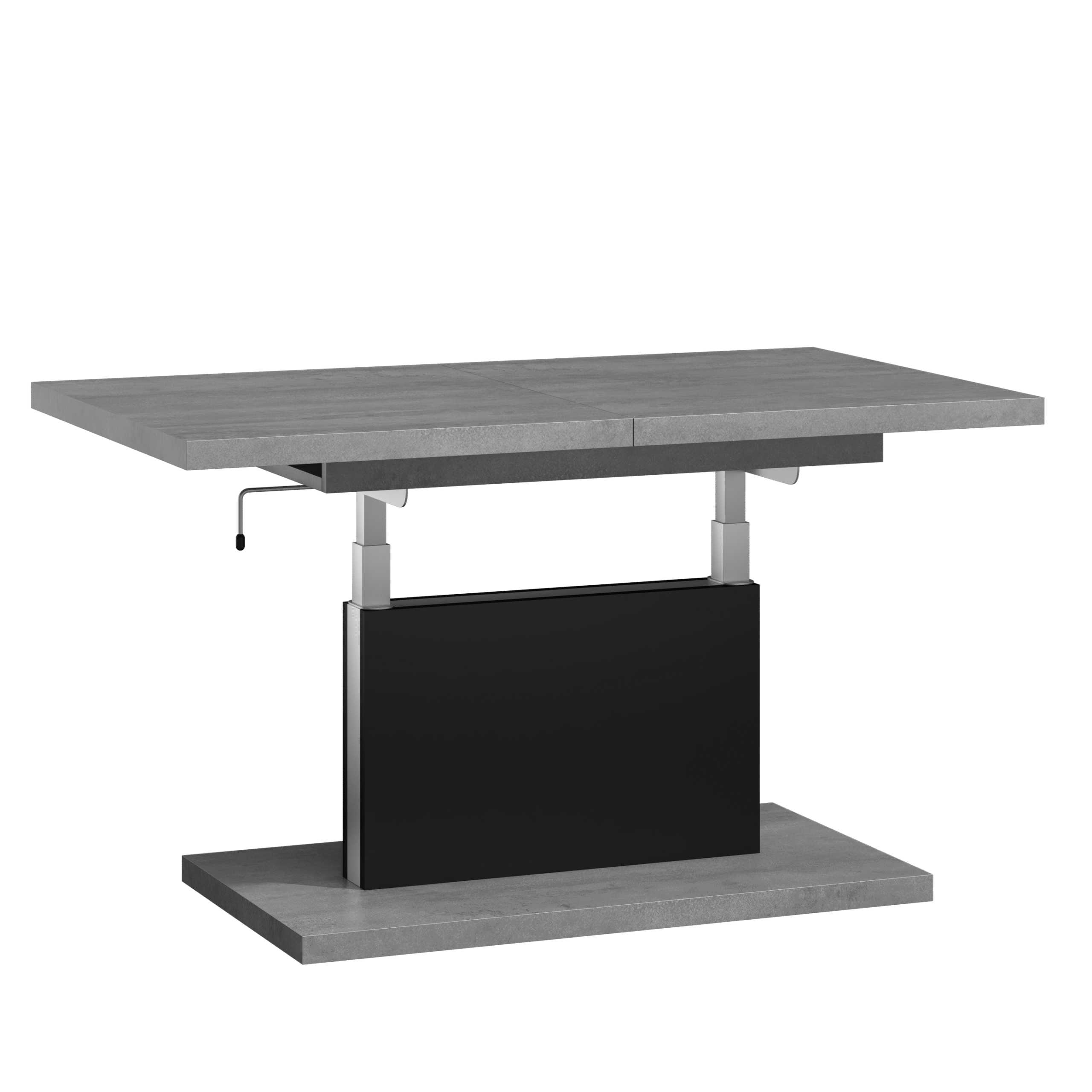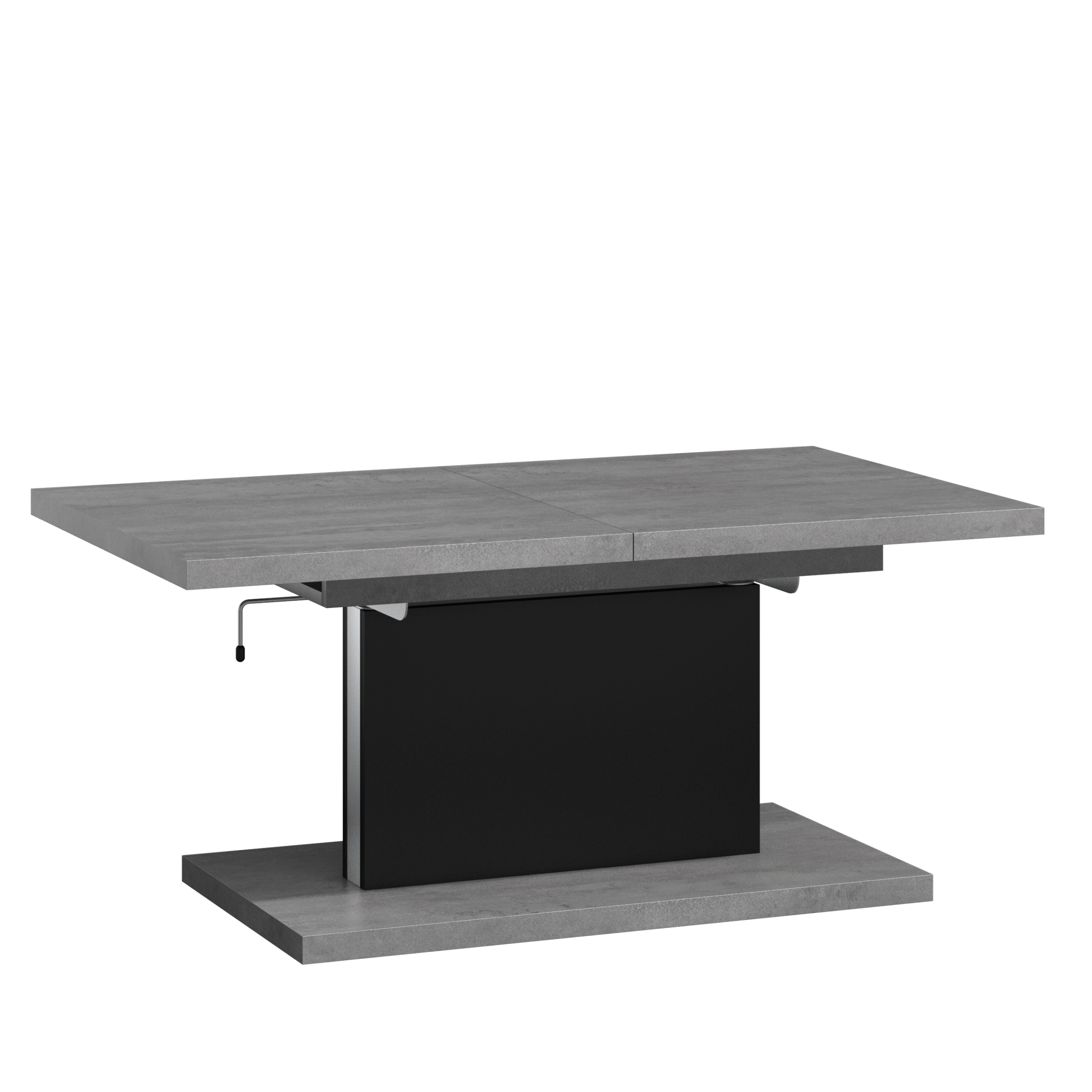 Mechanizm podnoszący ukryty jest za elegancką czarną maskownicą, do której została dobrana kolorystycznie czarna półka. Pozostałe części mebla mają inny kolor. Może to być uniwersalna biel, industrialny beton lub ciepłe drewno. Mebel sprawdzi się więc w mieszkaniach utrzymanych w różnych stylach. Szerokie możliwości regulacji jego wielkości powodują, że może być wykorzystywany w wielu miejscach: od salonów i jadalni po pokoje dziecięce. Wszystkie krawędzie ławy zostały starannie zabezpieczone.